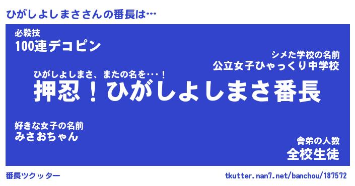 | 伝説のあだ名 | 『封印されしスナイパーひがしよしまさ』 |