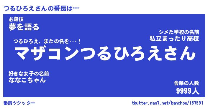 | ヒーロー風カッコイイあだ名 | 『スーパーツルヒロエ』『天弓騎士ツル』 |