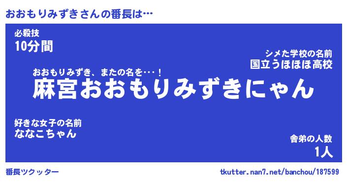 | ヒーロー風カッコイイあだ名 | 『スーパーオオモリミズキ』 |