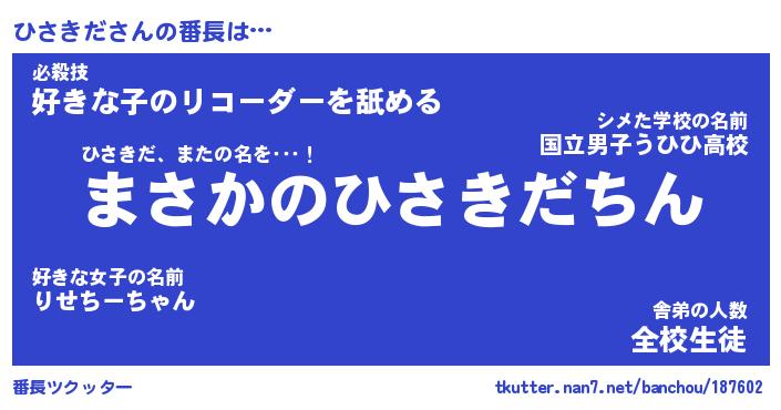 | ヒーロー風カッコイイあだ名 | 『スーパーヒサキダ』『暗黒騎士ヒサ』 |