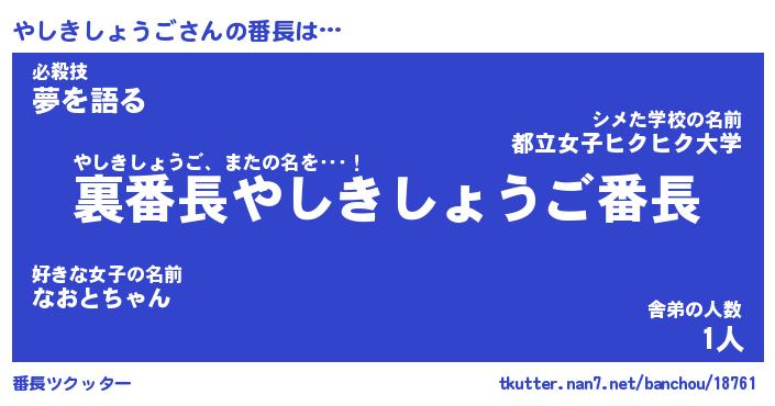 | ピコ太郎風あだ名 | 『ヤコ五郎』『ピヤ八郎』『ヤシ史郎』 |