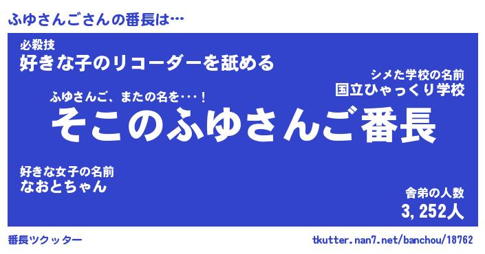 | ピコ太郎風あだ名 | 『フコ四郎』『ピフ次郎』『フユ一郎』 |