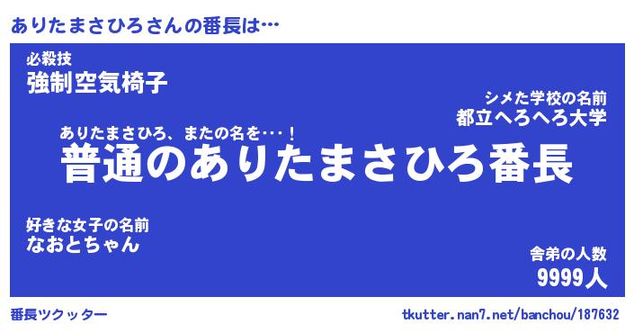 | 恥ずかしいあだ名 | 『プリティーありたまさひろ』『ありちん』 |