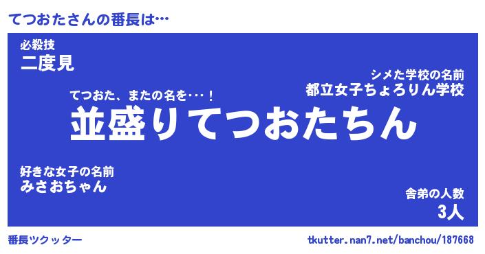 | 2回繰り返すあだ名 | 『てつてつ』『ててつつ』『おらおら』 |