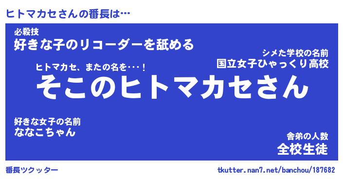 | ヒーロー風カッコイイあだ名 | 『スーパーヒトマカセ』『天弓騎士ヒト』 |