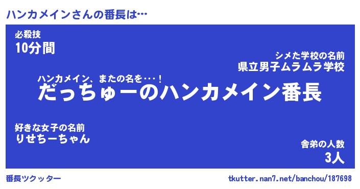 | 肩書あだ名 | 『ハンカメイン店長』『ハンカメイン班長』 |