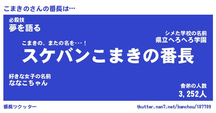| ヒーロー風カッコイイあだ名 | 『スーパーコマキノ』『銀牙騎士コマ』 |
