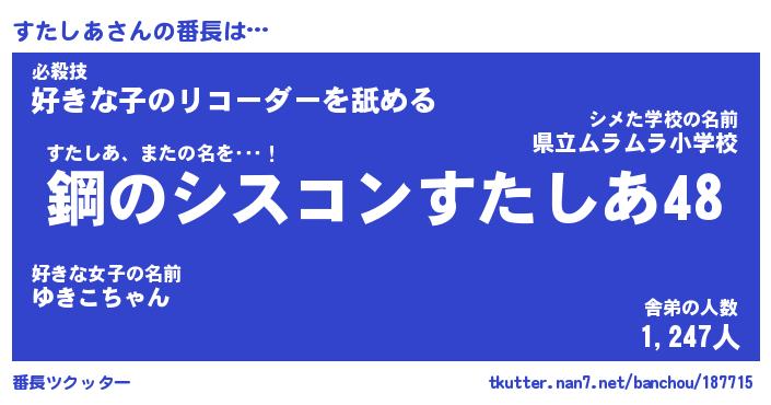 | 伝説のあだ名 | 『封印されしスナイパーすたしあ』 |