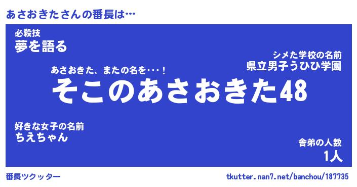 | 肩書あだ名 | 『あさおきたCEO』『あさおきた大統領』 |