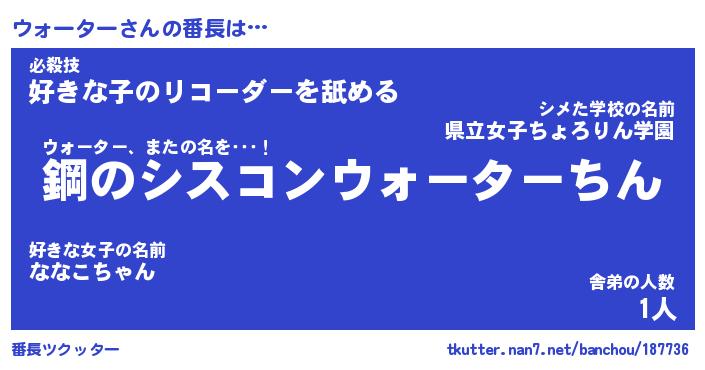 | 肩書あだ名 | 『ウォーター社長』『ウォーター大統領』 |