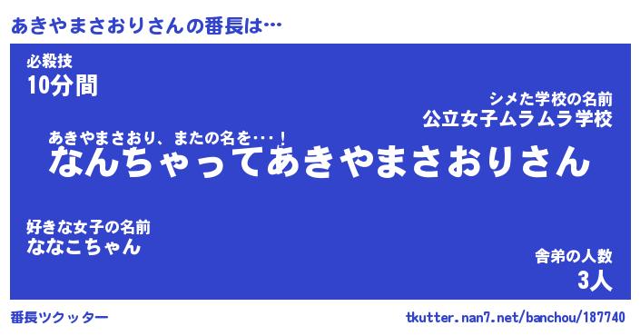 | 女子向けラノベタイトル風あだ名 | 『(仮)あきやまさおりのやんごとなき事情』 |