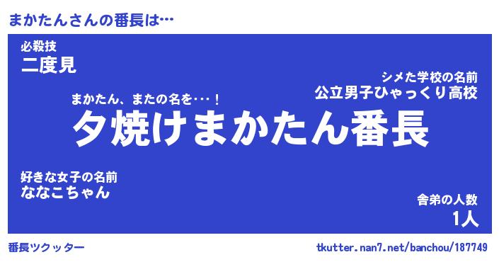 | 意味不明あだ名 | 『ペロリンまかたん』『永久保存まかたん』 |