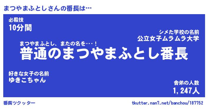 | ツイッター | まつやまふとしさんのツイッターID『masyumaro_star』 |