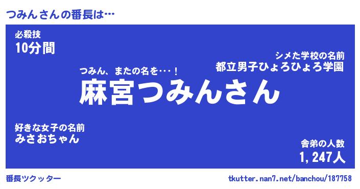 | ヒーロー風カッコイイあだ名 | 『スーパーツミン』『ウルトラつみんマン』 |