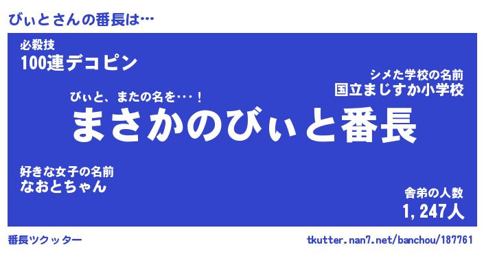 | 肩書あだ名 | 『びぃと御曹司』『びぃと総理大臣』 |