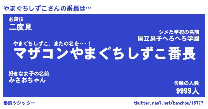 | ヒーロー風カッコイイあだ名 | 『スーパーヤマグチシズコ』 |
