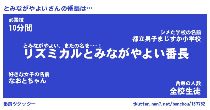| 2回繰り返すあだ名 | 『とみとみ』『ととみみ』『うずうず』 |