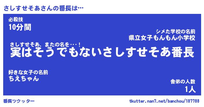 | ヒーロー風カッコイイあだ名 | 『スーパーサシスセソア』『魔戒騎士サシ』 |
