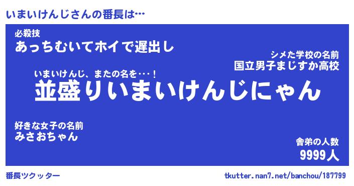 | ヒーロー風カッコイイあだ名 | 『スーパーイマイケンジ』『天弓騎士イマ』 |