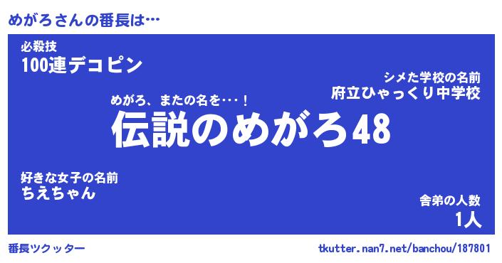 | ピコ太郎風あだ名 | 『メコ太郎』『ピメ太郎』『メガ八郎』 |