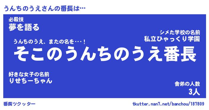 | 肩書あだ名 | 『うんちのうえ御曹司』 |