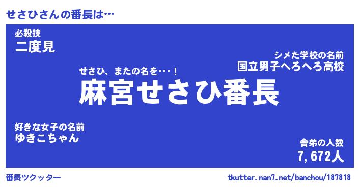 | 意味不明あだ名 | 『ペロリンせさひ』『せさひフォーエバー』 |