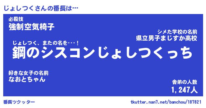 | ヒーロー風カッコイイあだ名 | 『スーパージョシツク』『銀牙騎士ジョ』 |