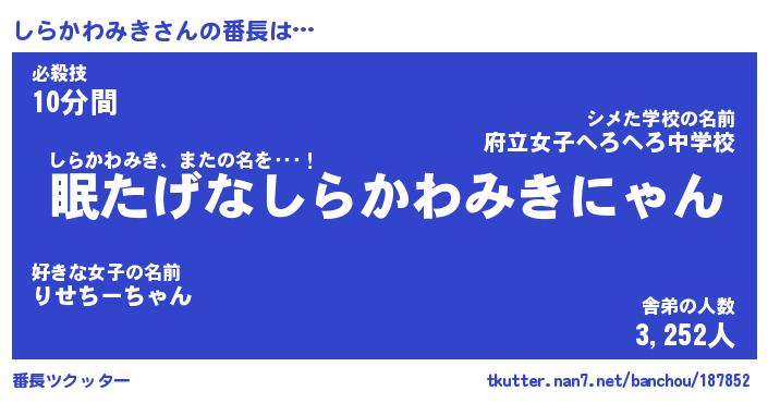 | 意味不明あだ名 | 『ペロリンしらかわみき』 |