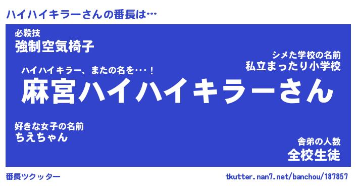 | ヒーロー風カッコイイあだ名 | 『スーパーハイハイキラー』 |
