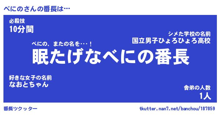 | 伝説のあだ名 | 『封印されしスナイパーべにの』 |