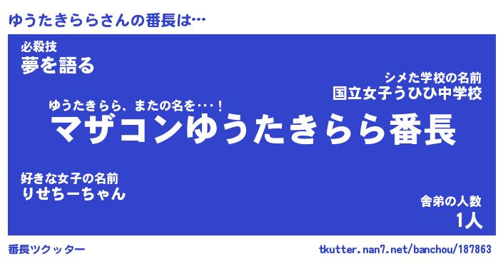 | 肩書あだ名 | 『ゆうたきらら社長』『ゆうたきらら班長』 |