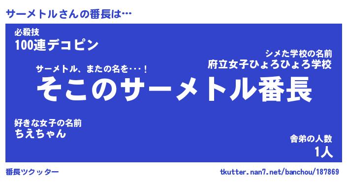 | 男性向けラノベタイトル風あだ名 | 『サーメトルの憂鬱』 |
