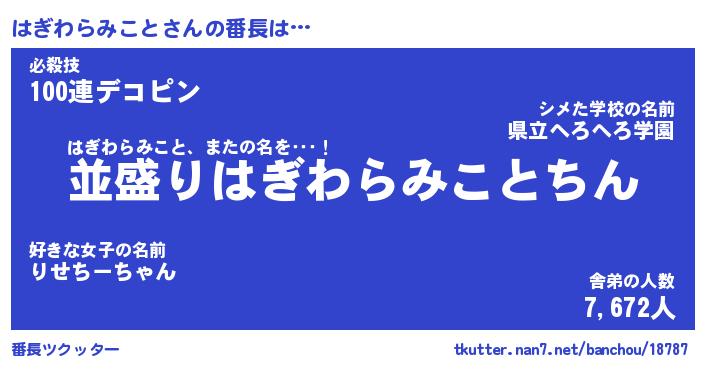 | 伝説のあだ名 | 『不死鳥のスナイパーはぎわらみこと』 |