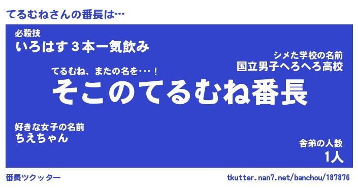 | 肩書あだ名 | 『てるむね御曹司』『てるむね総理大臣』 |