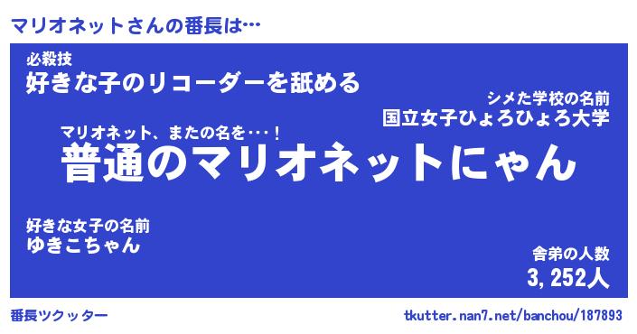 | 2回繰り返すあだ名 | 『マリマリ』『ママリリ』『ぬめぬめ』 |