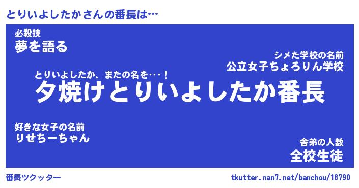 | ヒーロー風カッコイイあだ名 | 『スーパートリイヨシタカ』 |