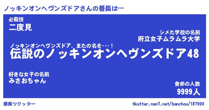 | 胡散臭い通販商品みたいなあだ名 | 『必ず成功する霊験あらたかなお札…その名も「ノッキンオンヘヴンズドア」』 |
