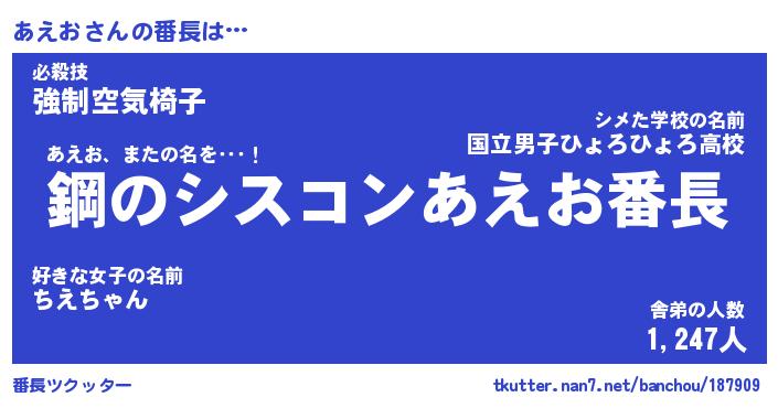 | ヒーロー風カッコイイあだ名 | 『スーパーアエオ』『ウルトラあえおマン』 |