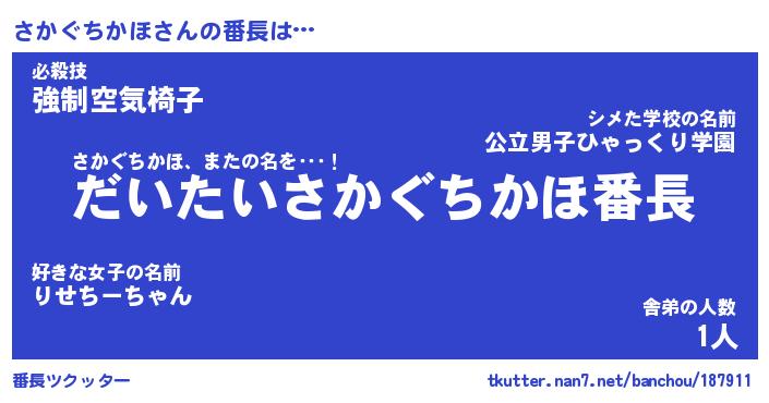 | ヒーロー風カッコイイあだ名 | 『スーパーサカグチカホ』『暗黒騎士サカ』 |