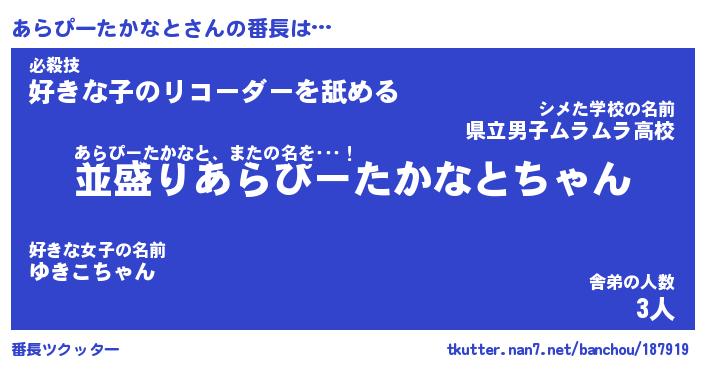 | 肩書あだ名 | 『あらぴーたかなと社長令嬢』 |