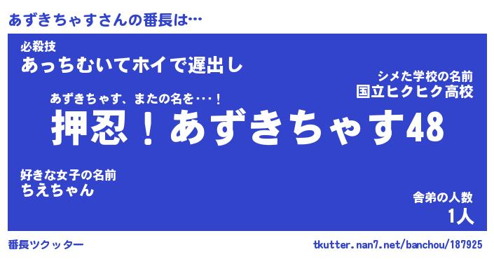 | ヒーロー風カッコイイあだ名 | 『スーパーアズキチャス』『黄金騎士アズ』 |