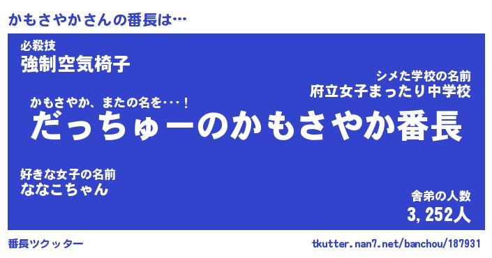 | ヘコむあだ名 | 『かももー』『牛乳』『かもぷりん』 |