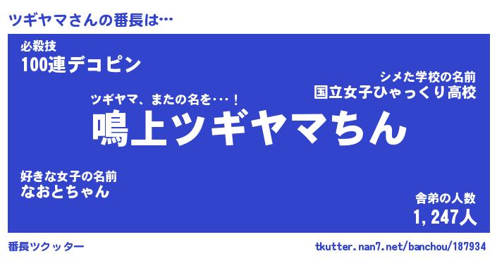 | ヘコむあだ名 | 『ツギにゅー』『つくし』『ツギっ子』 |