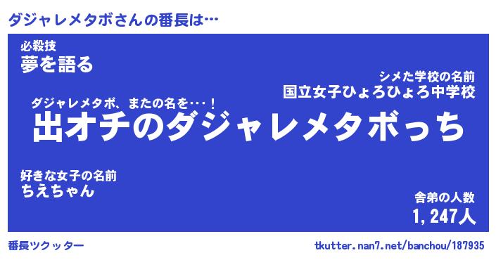 | ピコ太郎風あだ名 | 『ダコ八郎』『ピダ三郎』『ダジ五郎』 |