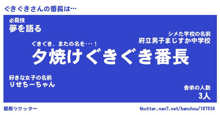 | ヘコむあだ名 | 『ぐきもー』『豆乳』『ぐき太郎』 |