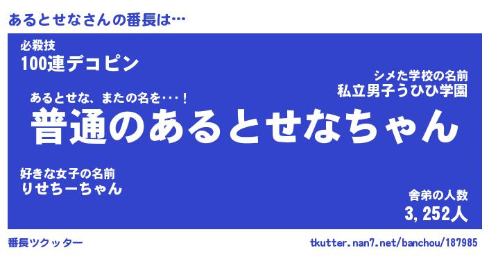 | 肩書あだ名 | 『あるとせな店長』『あるとせな総理大臣』 |