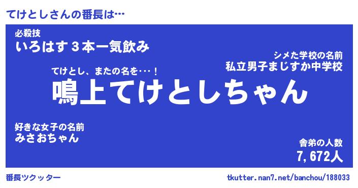 | 意味不明あだ名 | 『ペロリンてけとし』『永久保存てけとし』 |
