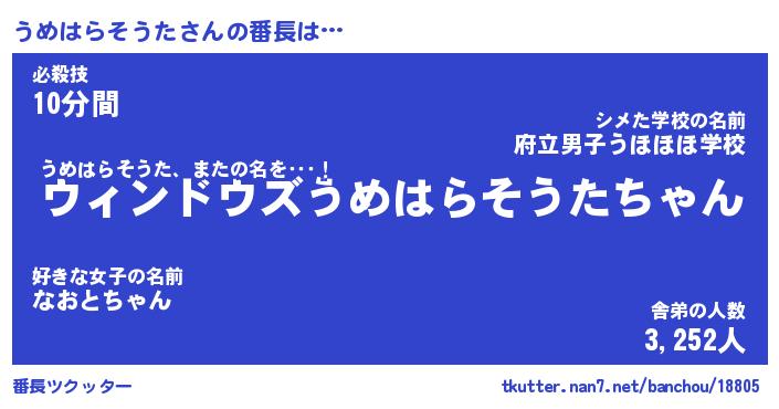 | 意味不明あだ名 | 『ペロリンうめはらそうた』 |