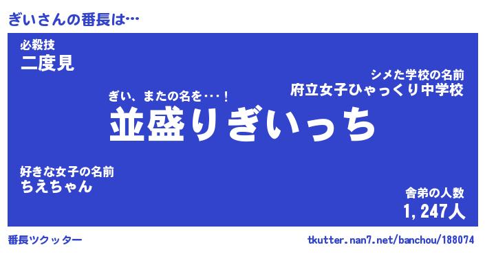 | ピコ太郎風あだ名 | 『ギコ一郎』『ピギ四郎』『ギイ五郎』 |