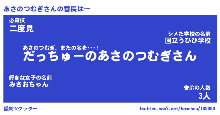 | 伝説のあだ名 | 『伝説のスナイパーあさのつむぎ』 |